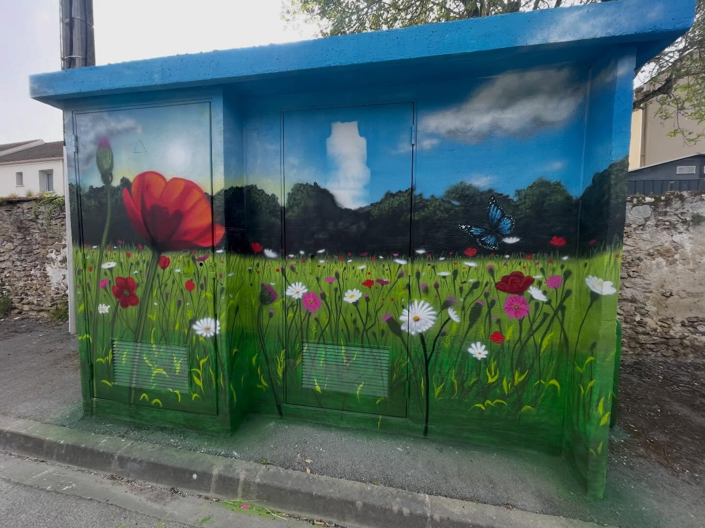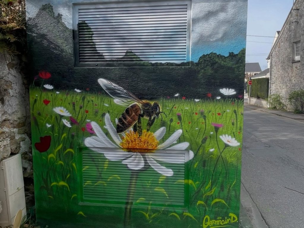Dans la continuité de l’embellissement de nos transformateurs électriques, vous pourrez dès à présent découvrir la dernière réussite de l’artiste graffeur Djemba Germain située rue Bécoiseau ! Nous avons souhaité un thème champêtre et bucolique pour celui-ci.