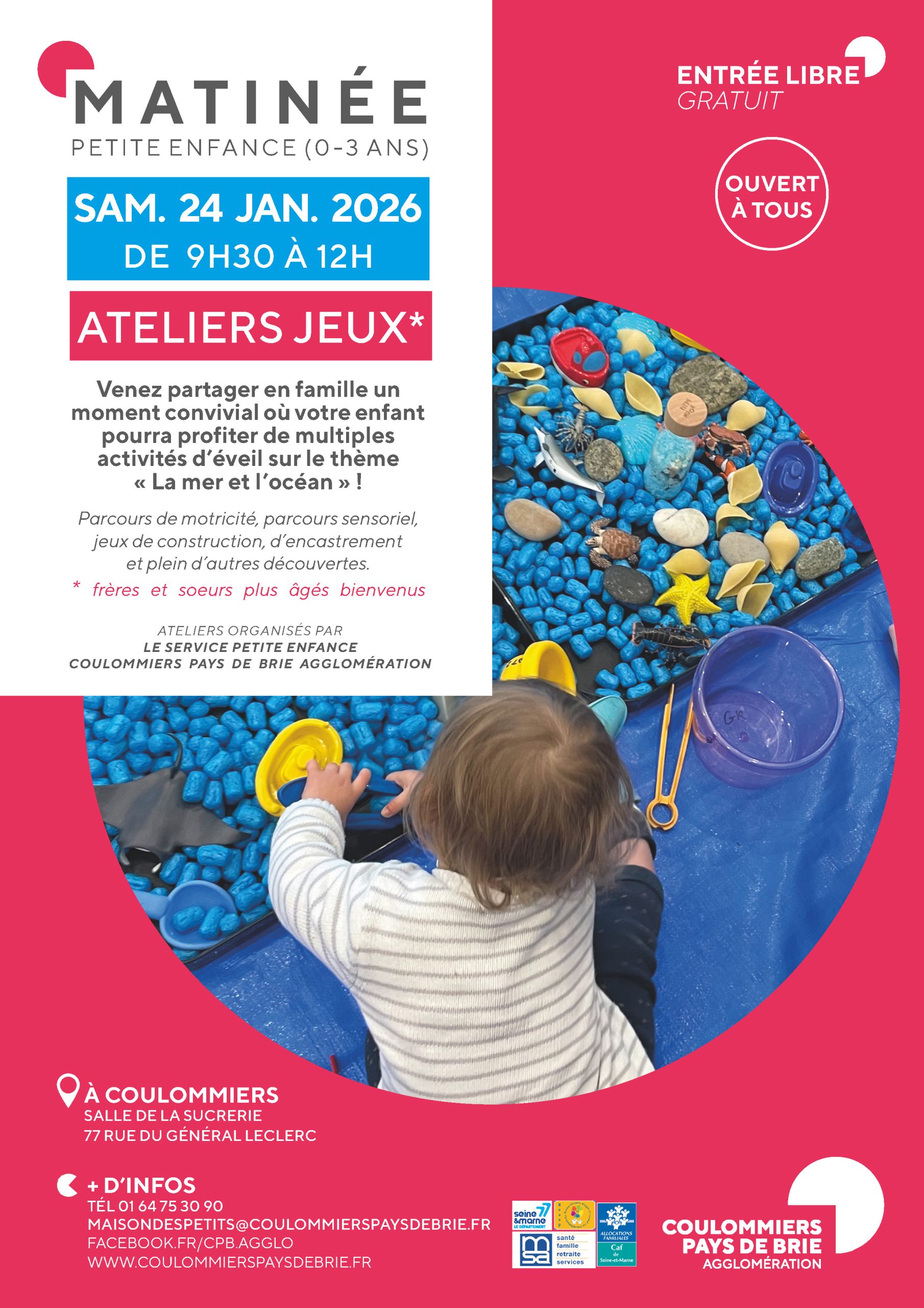 Le service Petite Enfance de la communauté d’agglomération Coulommiers Pays de Brie vous invite à profiter de multiples activités d’éveil sur le thème de « La mer et l’océan » : parcours de motricité, parcours sensoriel, jeux de construction, d’encastrement et plein d’autres découvertes.
